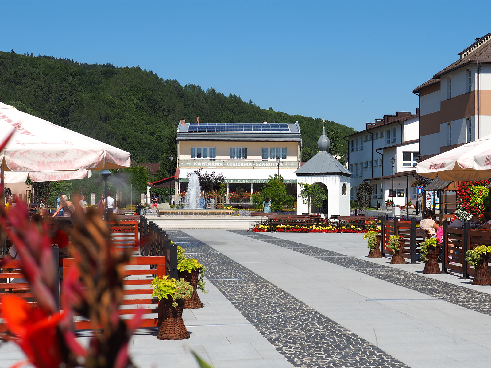 9. Rynek w Muszynie: Klimatyczny rynek z zabytkową zabudową i urokliwymi kafejkami.